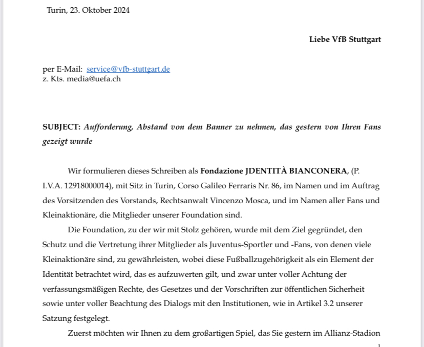 Formuliamo la presente come Fondazione JDENTITÀ BIANCONERA e in nome di tutti i tifosi e piccoli azionisti che fanno parte della nostra Fondazione. La Fondazione, della quale facciamo orgogliosamente parte, è nata con l’obiettivo di assicurare la tutela e la rappresentanza degli associati in quanto sportivi e tifosi juventini, molti dei quali piccoli azionisti, considerando […]